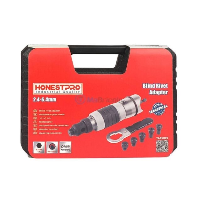 يُعد محول HONESTPRO YAE5022 ابتكاراً ذكياً يغنيك عن استخدام آلات البرشام اليدوية المرهقة. يتيح لك هذا المحول تحويل أي مثقاب كهربائي أو لاسلكي (Visseuse) إلى آلة برشام أوتوماتيكية قوية وسريعة. صُنع هذا الملحق من فولاذ CR-MOV (كروم موليبدينوم) وفولاذ Cr-V المعالج حرارياً، مما يضمن له قوة تحمل استثنائية وعمراً طويلاً حتى مع الاستخدام المكثف في الورش والمواقع الإنشائية.
