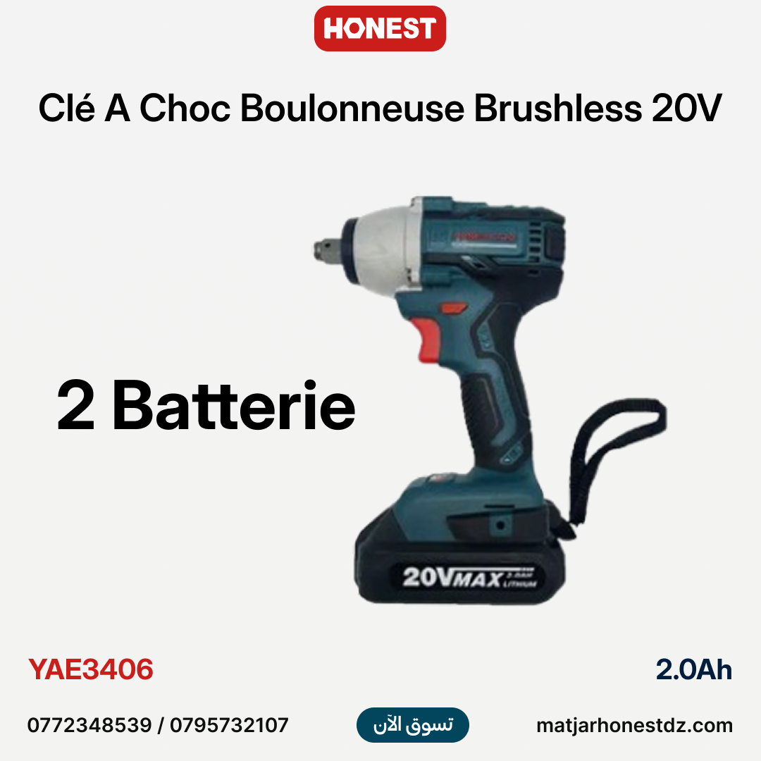 Boulonneuse Clé A Choc Batterie Brushless 20V 2.0Ah HONESTPRO | YAE3406