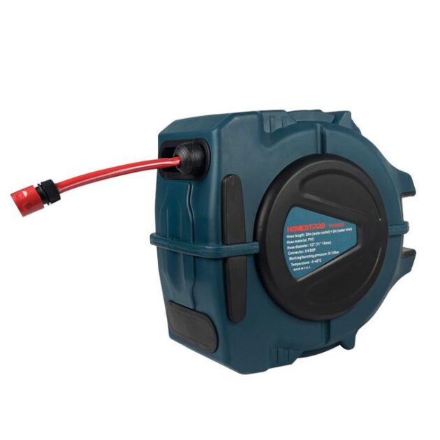 • نظام سحب أوتوماتيكي ومنظم: يتيح لك سحب الطول الذي تحتاجه فقط، وعند الانتهاء، يقوم النظام بإعادة الخرطوم تلقائياً وبشكل مرتب داخل البكرة دون أي عناء.