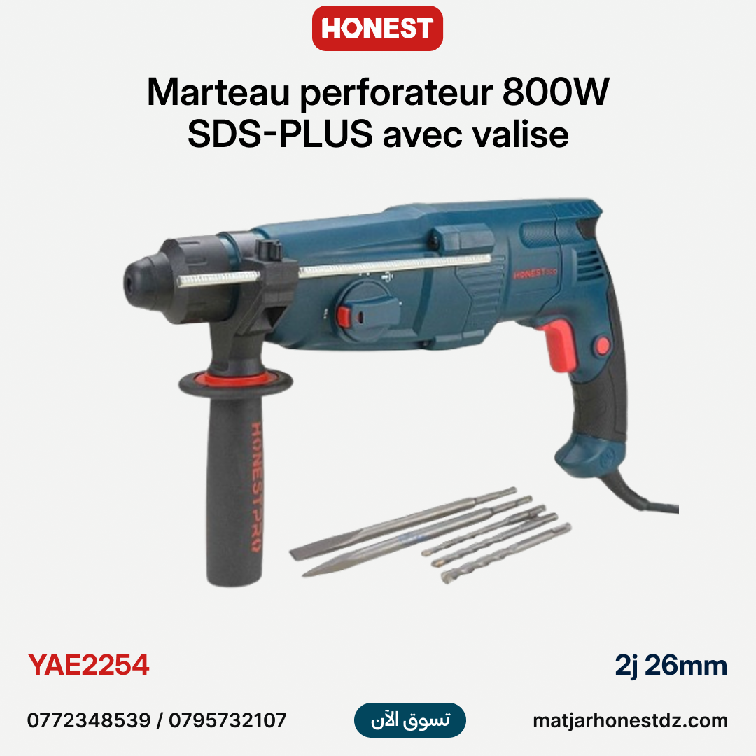 آلة الثقب بالطرق الكهربائية (Marteau Perforateur) بقوة 800 واط و4 وظائف من HONESTPRO | YAE2254