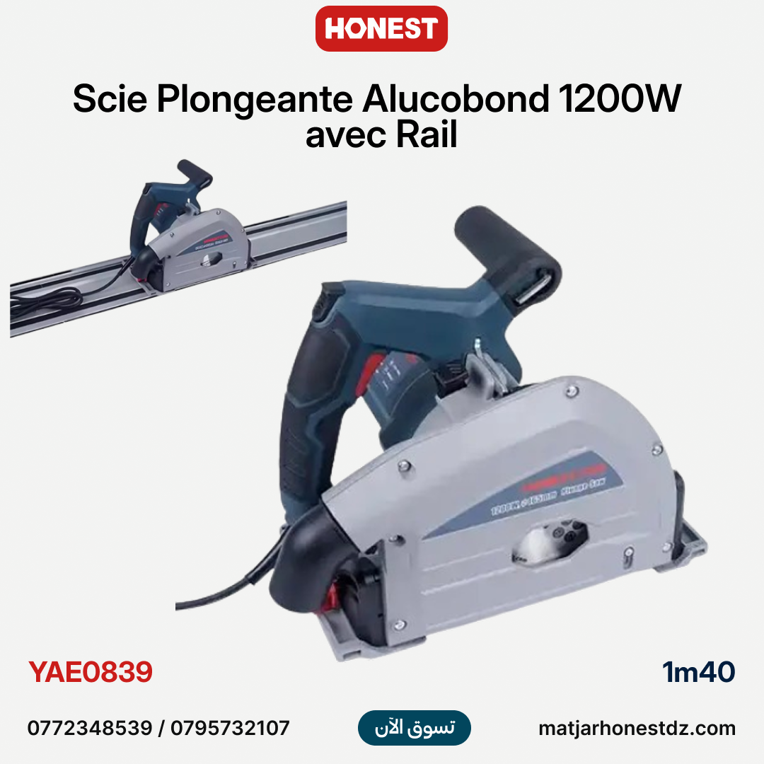 يعتبر المنشار الغاطس من HONESTPRO الأداة الأكثر دقة لقص الألواح الخشبية وألواح الألمنيوم المركبة (Alucobond). بفضل “سكة التوجيه” (Rail) المرفقة بطول 1.40 متر، يمنحك هذا المنشار نتائج تضاهي الماكينات الصناعية الكبيرة، حيث يضمن قصاً مستقيماً تماماً ونظيفاً بدون أي نتوءات، مع إمكانية البدء بالقص من منتصف اللوح بفضل خاصية الغطس.