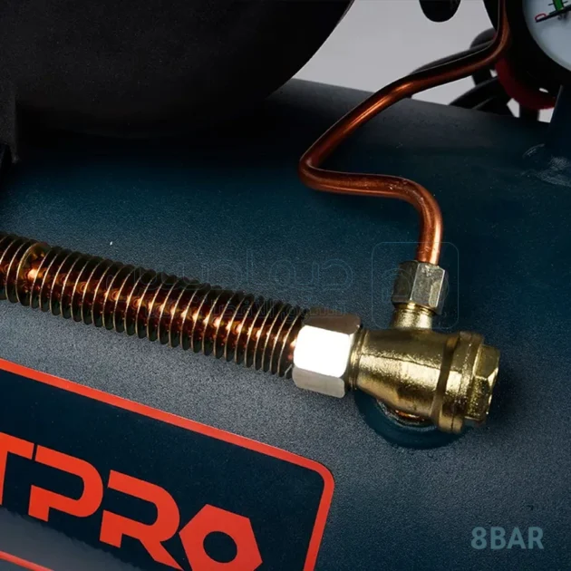• محرك قوي (2.5HP): يوفر قوة ضخ هائلة تصل إلى 120 لتر في الدقيقة، مما يضمن تعبئة الخزان بسرعة والقدرة على تشغيل الأدوات الهوائية (Pneumatic tools) باستمرارية.