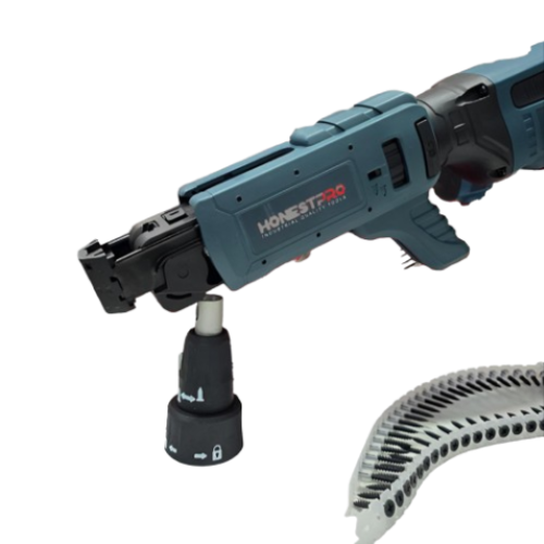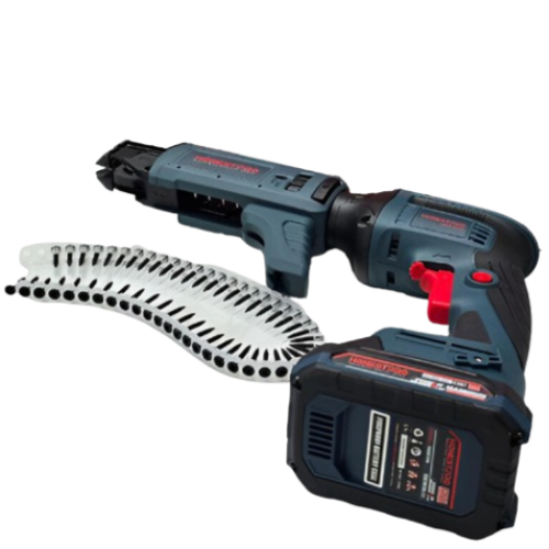 دقة متناهية: مزود بنظام تحكم يسمح بتثبيت البراغي بدقة عالية وبسرعة ثابتة، مما يمنع تلف ألواح الجبس.