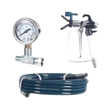 نطاق عمل واسع: مزودة بخرطوم ضغط عالٍ بطول 15 متراً، مما يمنحك حرية التنقل في المواقع الكبيرة وطلاء الأسقف العالية والواجهات دون الحاجة لتحريك الماكينة باستمرار.